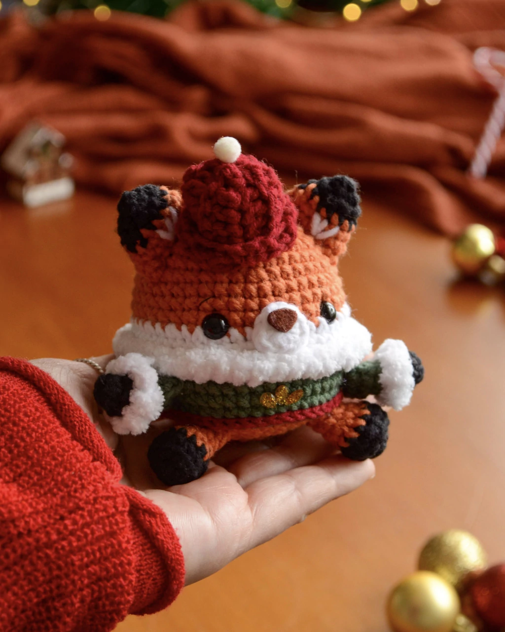 aki, é uma raposinha que ama o outono, mas ama o clima de natal também! ela foi criada especialmente pra decorar sua estante ou qualquer cantinho nesse natal!